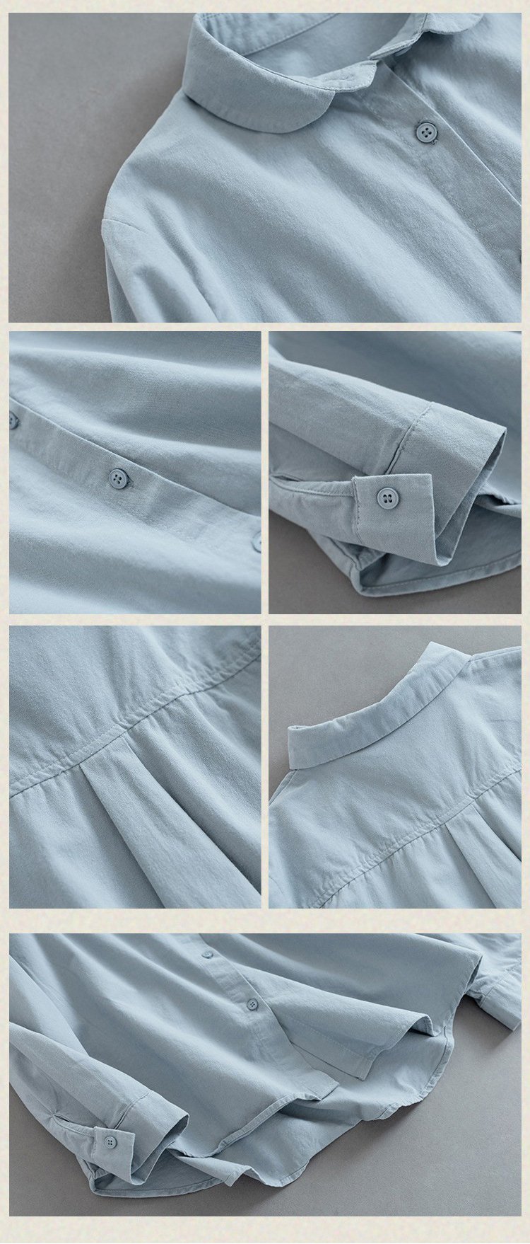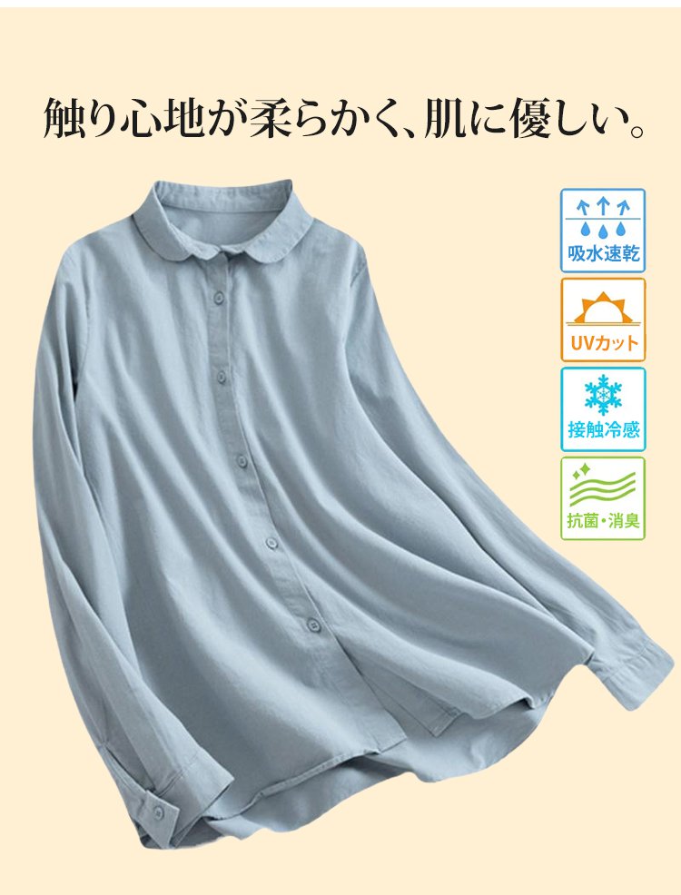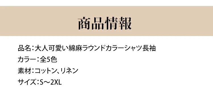 大人可愛い綿麻ラウンドカラーシャツ長袖