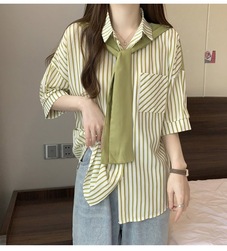フェイクレイヤードショール付きシャツ